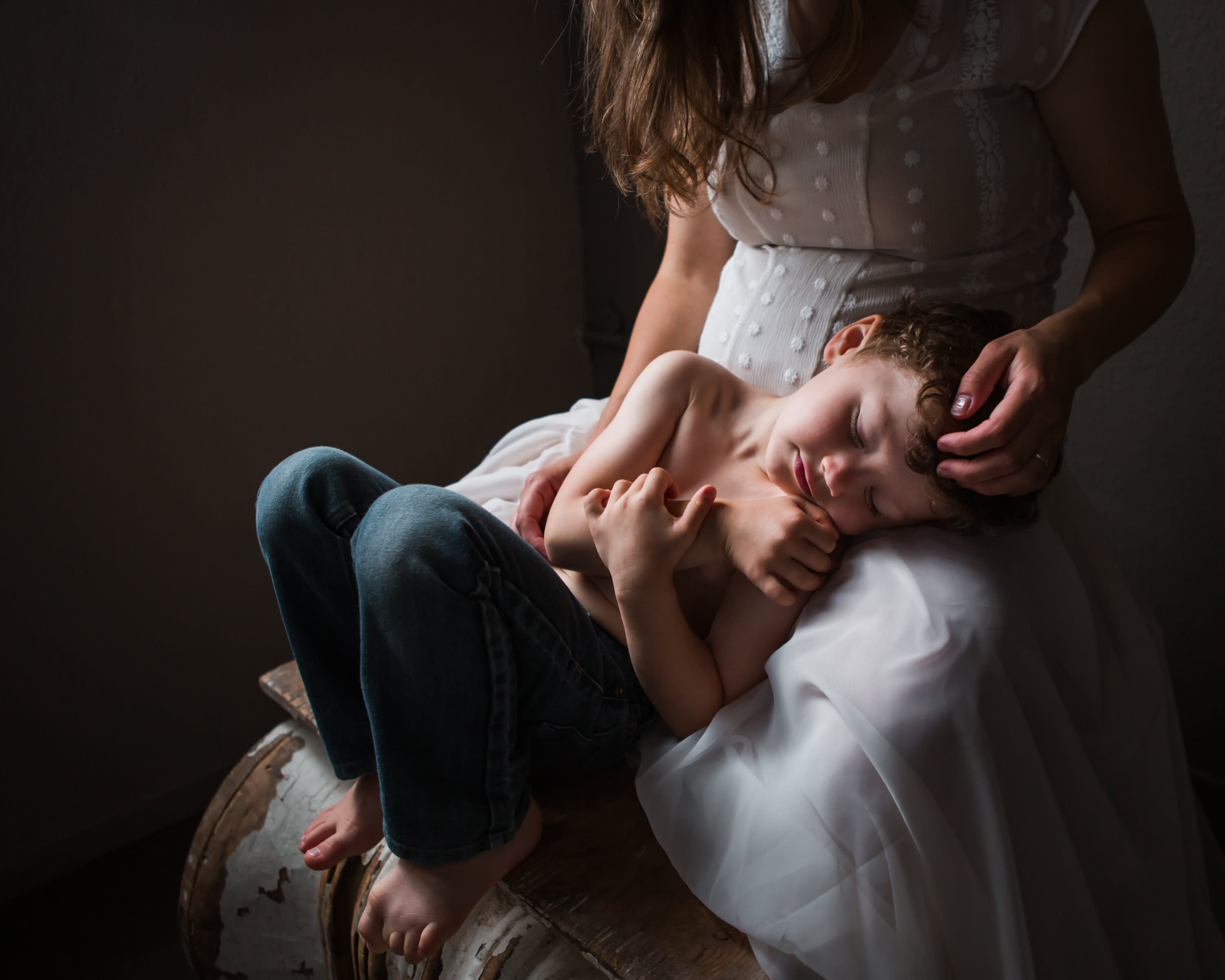 Fine-art photo of pregnant mother and son at premiere photography studio in San Francisco East Bay.